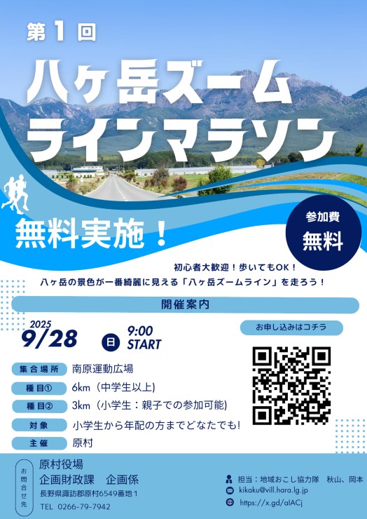 八ヶ岳ズームラインマラソンの開催に伴う通行止めのお知らせ - 原村
