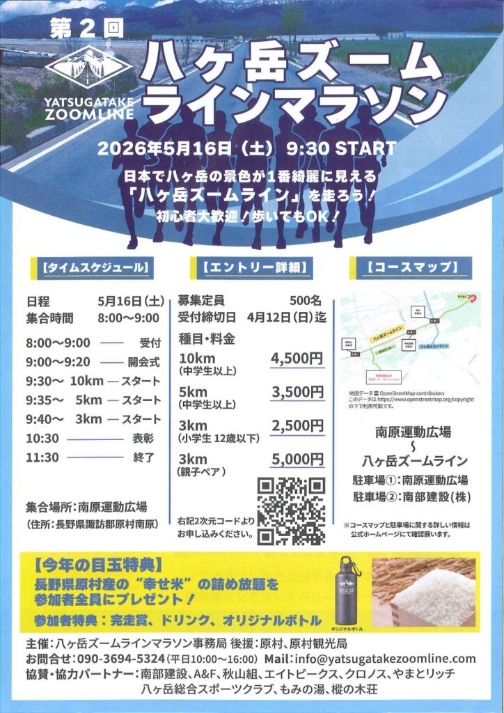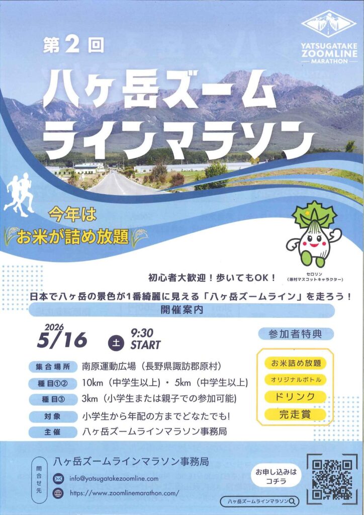 昨年に続き2回目となる「八ヶ岳ズームラインマラソン」が、2026年5月16日(土)に開催されます。